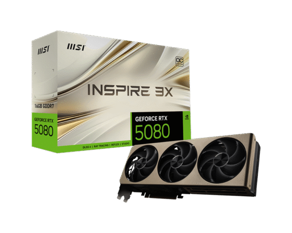 כרטיס מסך – MSI GeForce RTX 5080 INSPIRE 3X OC 16GB – צבע זהב