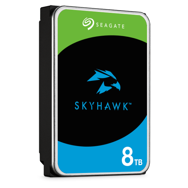 כונן HDD איכותי מבית Seagate מסדרת SKYHAWK בעל נפח של 8TB, בממשקSATA III.