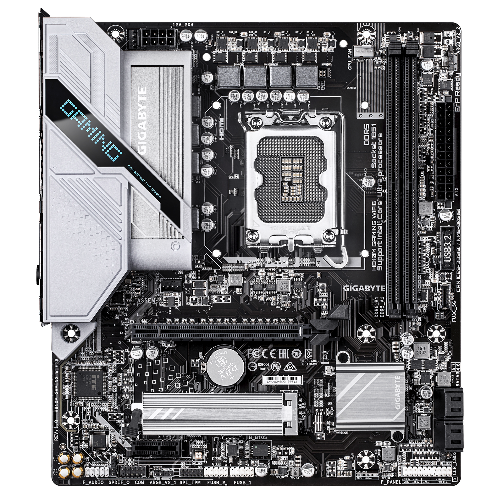 לוח אם איכותי מבית Gigabyte, בעל תושבת LGA1851, ערכת שבבים H810, תאימות לזיכרונות DDR5, בעל יציאות HDMI ,DisplayPort.