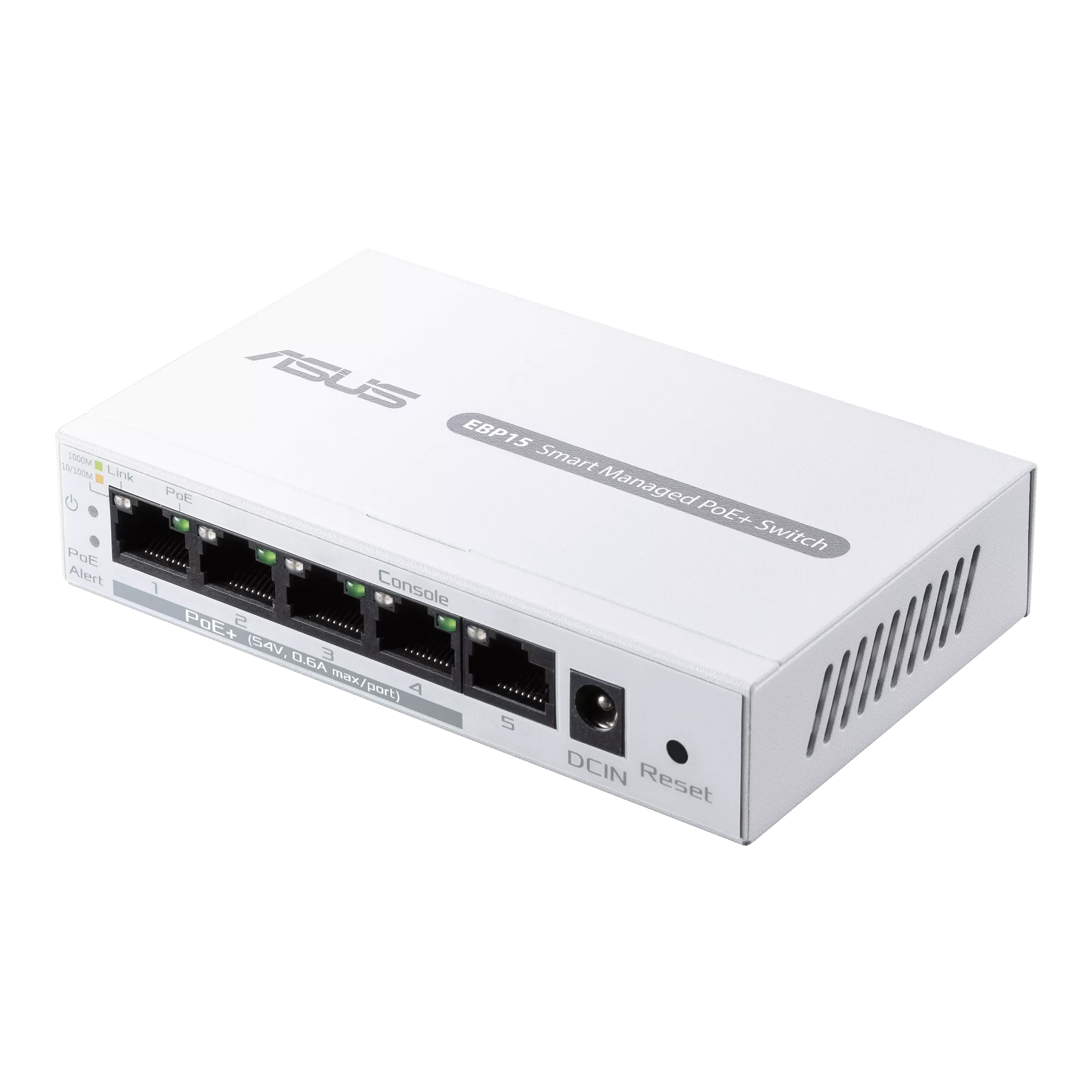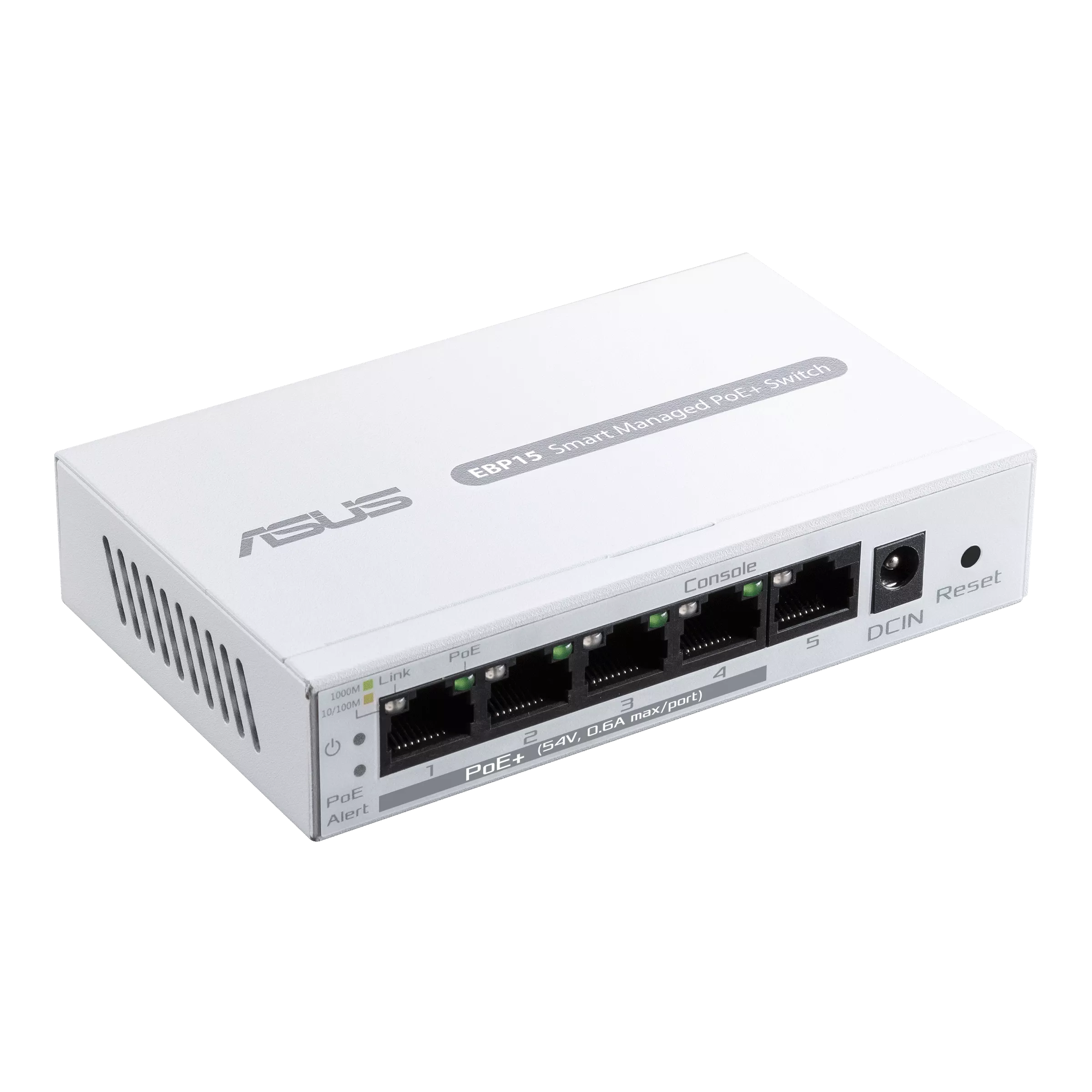 מתג מנוהל – +ASUS ExpertWiFi EBP15 5 Port GbE Smart Managed PoE+ Switch With 4- Ports PoE