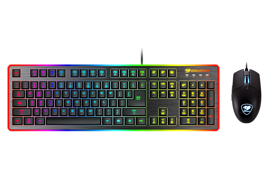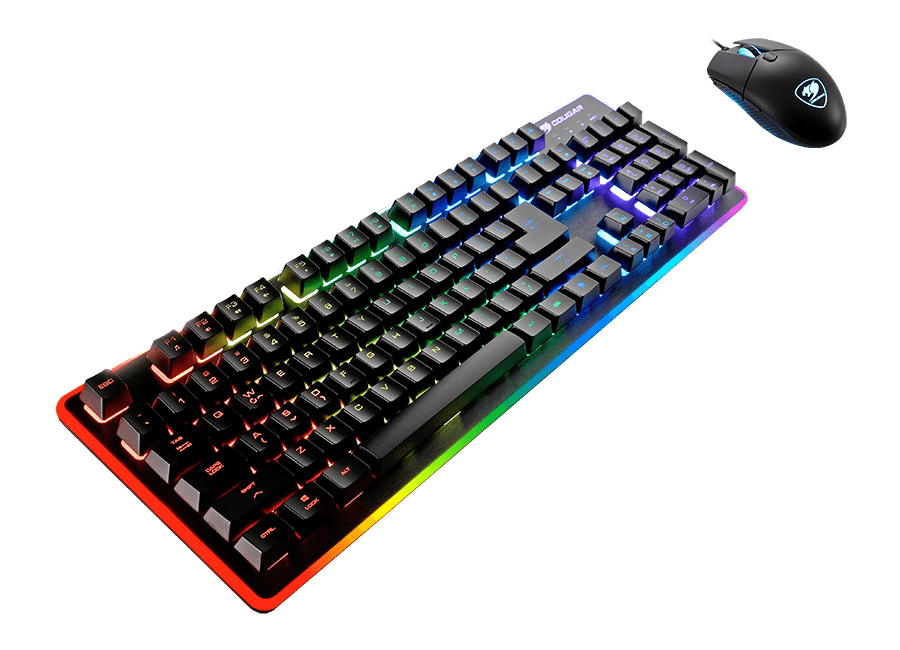 סט מקלדת ועכבר גיימינג מבית Cougar דגם Deathfire EX בתצורת מקלדת מלאה עם סוויצ'ים מכאניים היברידים ועכבר גיימינג הכוללים תאורת RGB.