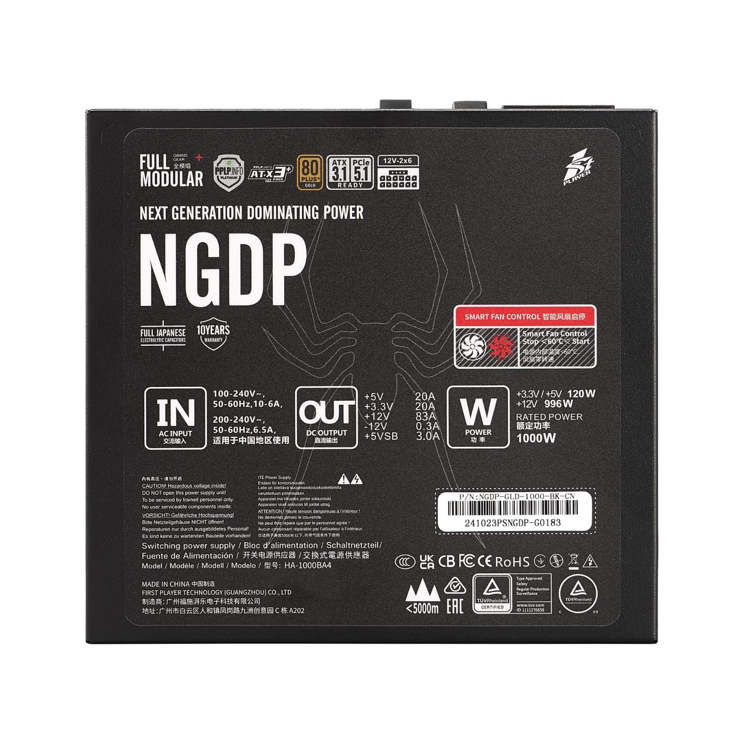 ספק כוח מודולרי איכותי מבית 1StPlayer בהספק של 1000W ונצילות של 80Plus Gold.